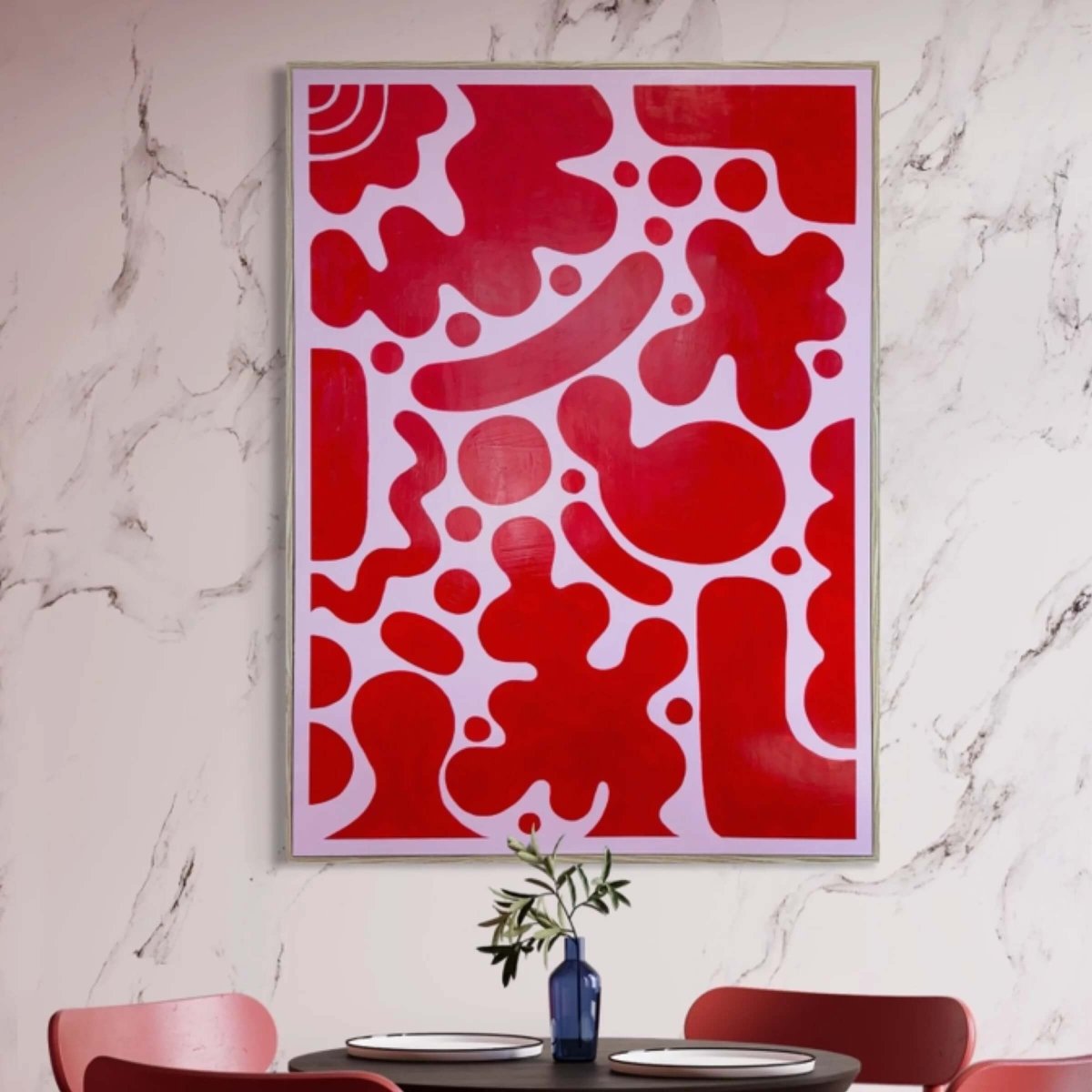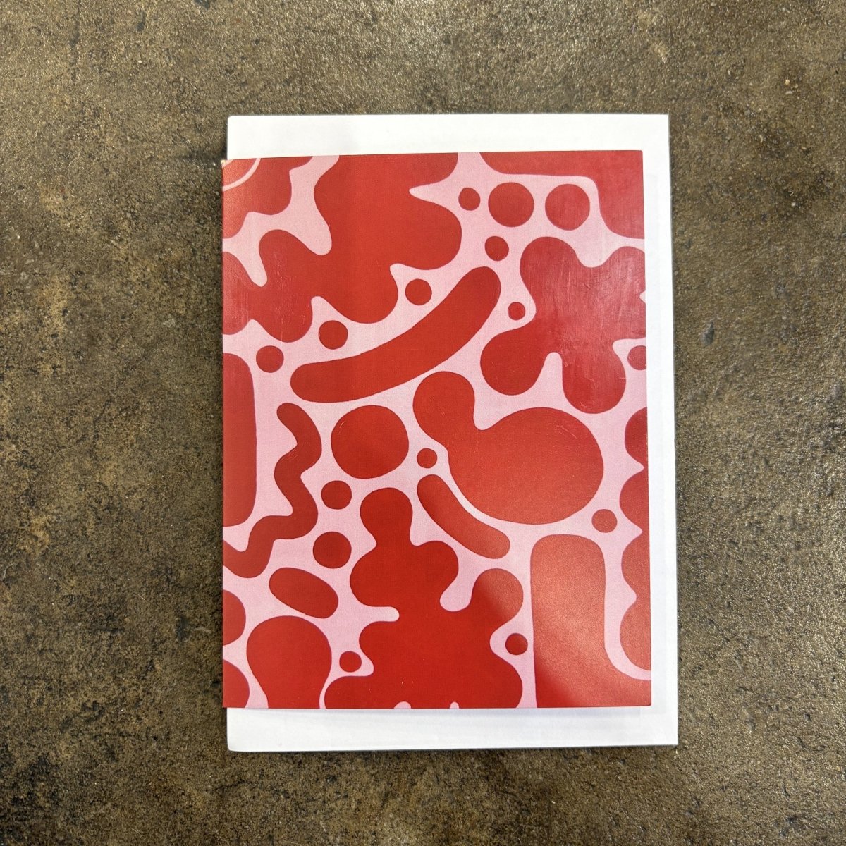 Bold, bright and impossible to ignore, this greeting card showcases the vibrant abstract work of Geelong artist Jesse-Quins. The artwork’s playful red forms and organic shapes pop beautifully in card size, making it a tiny hit of modern art you can actually send.