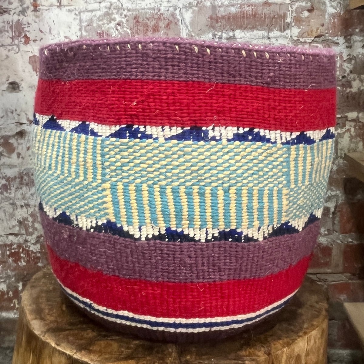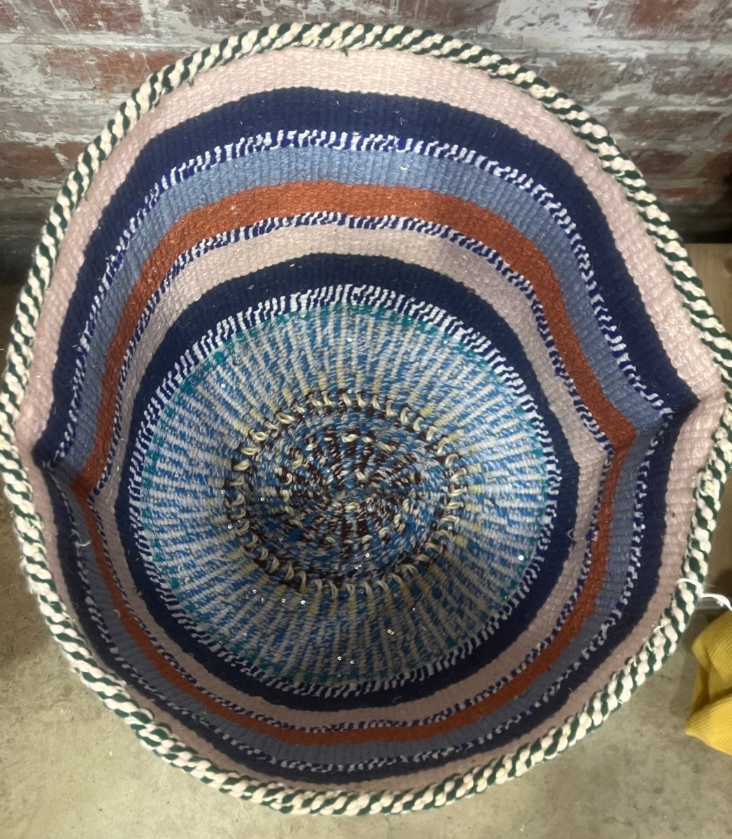 Add something beautiful and textural to your home with the Nifty Knits Kiondo Basket, a handwoven African basket crafted from recycled sweaters and sisal. Each sweater is carefully unraveled into yarn and woven around a sisal framework according to the artisan’s unique design, creating a one-of-a-kind basket full of personality and charm.