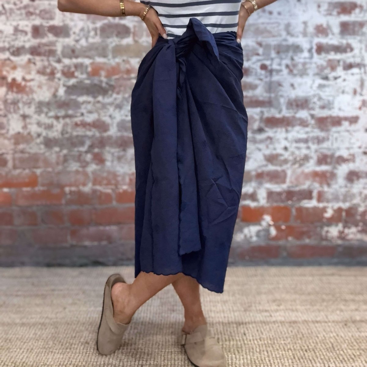 Handmade in India by artisans who know their craft, this embroidered sarong carries a sense of touch and intention. The fabric moves easily, knotting cleanly at the hip or floating as a wrap when the evening breeze arrives. It’s a navy sarong that doesn’t shout; it just slots into your life with quiet confidence.