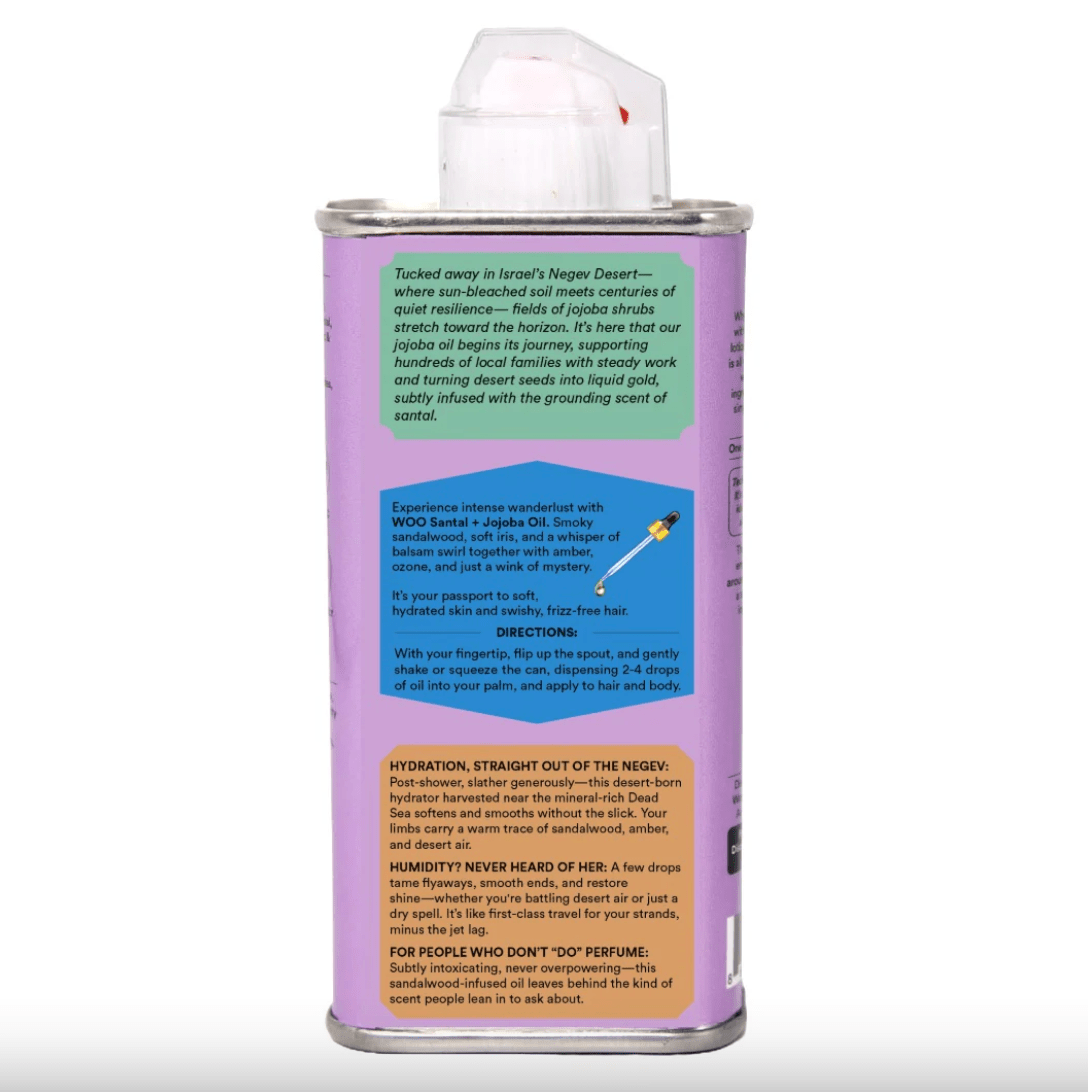 The Santal + Jojoba Oil by the World of Oils is a lightweight, fast-absorbing formula that delivers deep hydration and nourishment to hair, skin, and nails- without the greasy residue. This multitasking elixir softens, smooths, and restores while leaving behind an irresistible fragrance. Fresh top notes of ozone, violet iris, and balsam mingle with grounding sandalwood, warm leather, and amber for a subtle, intoxicating scent.