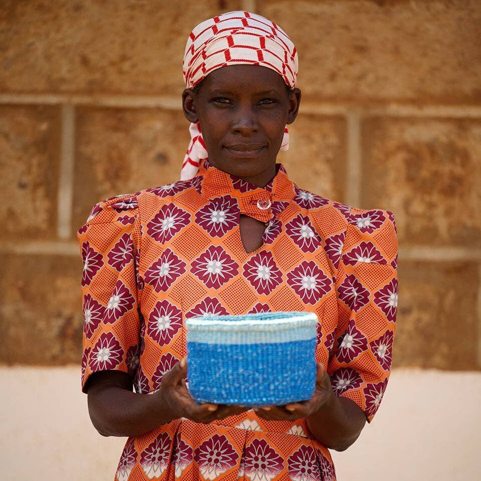 Add a pop of colour to your home with the Tofauti Blue Woven Basket, a handwoven African basket ethically crafted in Kenya. Skilled women’s co-operatives create each basket using sustainable sisal grass, blending sky blue and ocean blue in a modern two-tone colour block design.